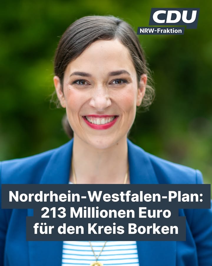 Nordrhein-Westfalen-Plan: Ein großer Schritt für unsere Region!Mit dem größten Investitionsprogramm stärken wir unsere Infrastruktur mit 31,2 Milliarden Euro.Für den Kreis Borken bedeutet das über 213 Millionen Euro ? ein klarer Fokus auf Bildung, Sanierung und Infrastruktur.Diese Investitionen kommen direkt bei den Menschen an und sichern unsere Zukunft.Zuweisungen im Kreis Borken:Ahaus ? 17.804.408,87 ?Bocholt ? 29.703.374,24 ?Borken ? 19.422.260,53 ?Gescher ? 8.217.693,51 ?Gronau ? 19.869.733,64 ?Heek ? 4.741.565,11 ?Heiden ? 4.391.987,77 ?Isselburg ? 5.168.906,25 ?Legden ? 3.985.378,84 ?Raesfeld ? 5.514.361,51 ?Reken ? 7.265.341,47 ?Rhede ? 8.848.170,08 ?Schöppingen ? 4.109.921,85 ?Stadtlohn ? 9.291.862,26 ?Südlohn ? 4.561.465,45 ?Velen ? 6.307.484,31 ?Vreden ? 11.406.631,51 ?Kreis Borken ? 42.652.636,80 ?